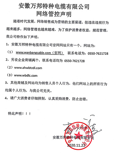鄭重聲明:安徽萬邦特種電纜有限公司官方網站為:www_wanbangcable_com.vlqkqnp3.cn,除此之外無任何子網站或合作網站,其余均為假冒偽劣。電話:0550-7621728 13485756353 地 址:安徽省天長市滁州高新技術產業開發區經四路29號
